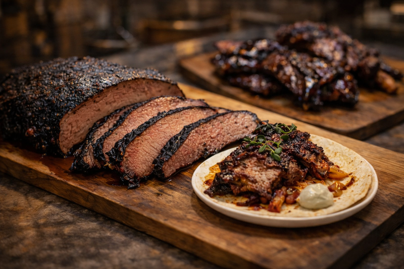 Brisket, Short Rib, Pulled Pork — nach 12+ Stunden bereit. Täglich limitiert.
